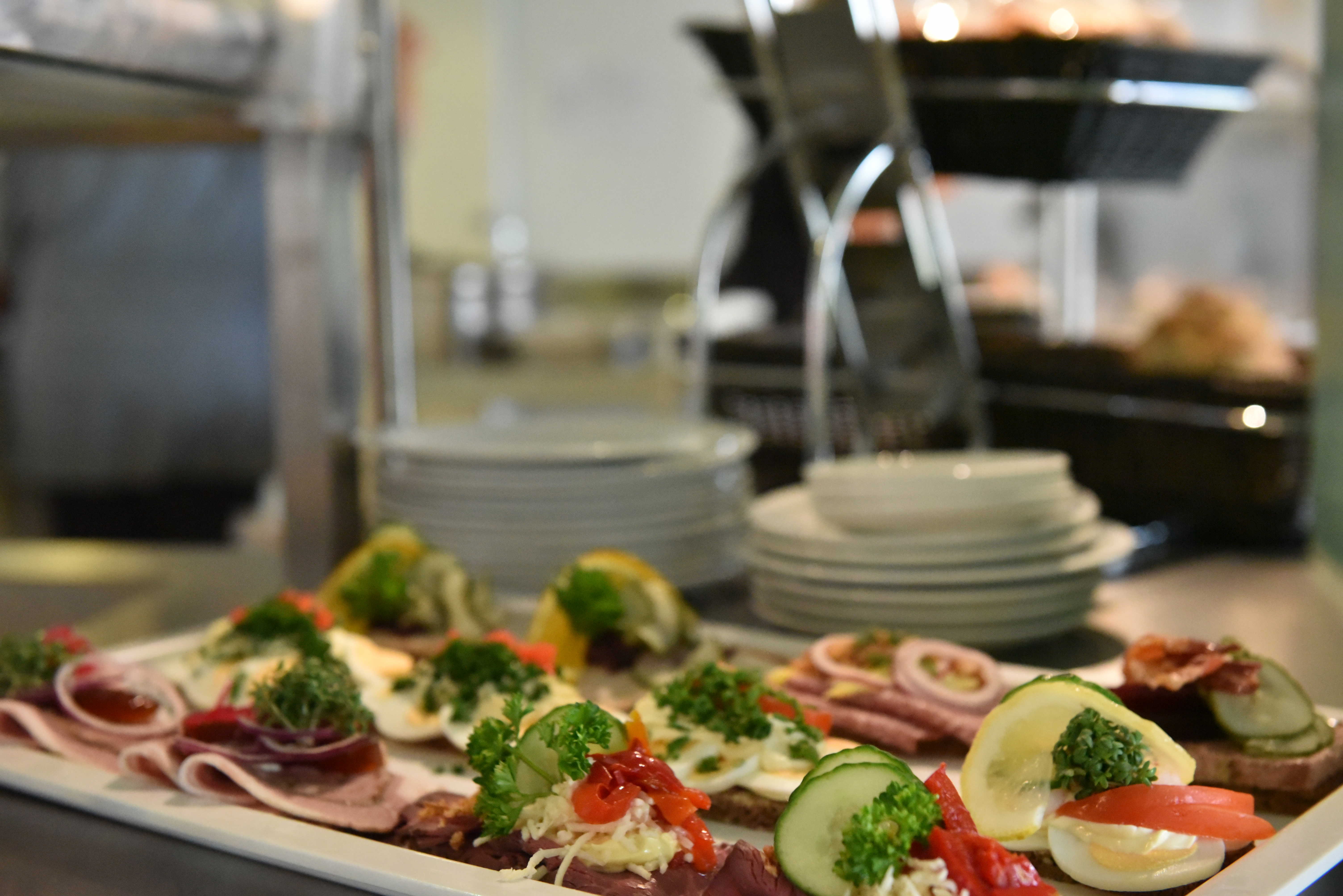 Restauranten tilbyder et bredt udvalg af god og traditionel mad. Du kan bl.a. købe et varmt hovedmåltid, frokostretter, smørrebrød, sandwichs og forskellige slags boller og kage.
